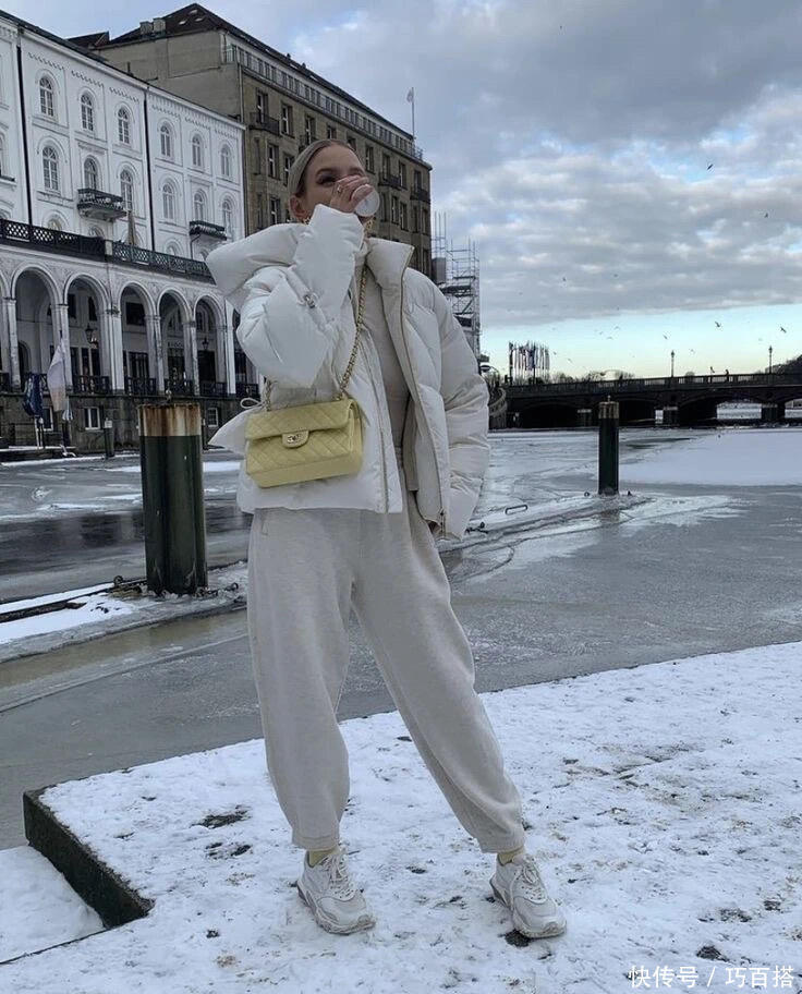 下雪天际穿外出后果更佳,颜料与雪地颜料造成高度结伙,氛围调和,御寒安适,搭配同色系通顺裤或浅灰色瑜伽裤,松开赚足回头率。