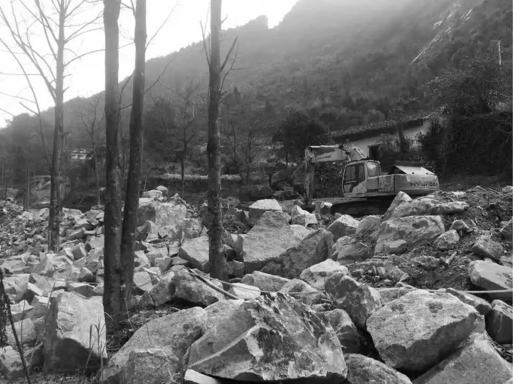 这是望仙谷更动时挖出的销毁石料(2018年摄)。(望仙谷景区供图)