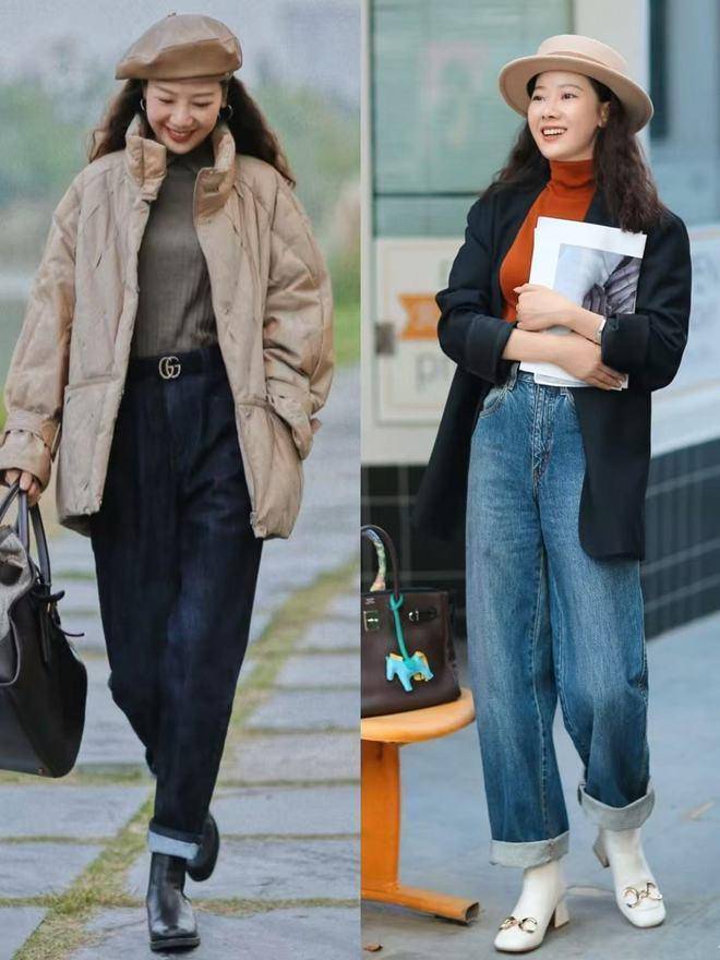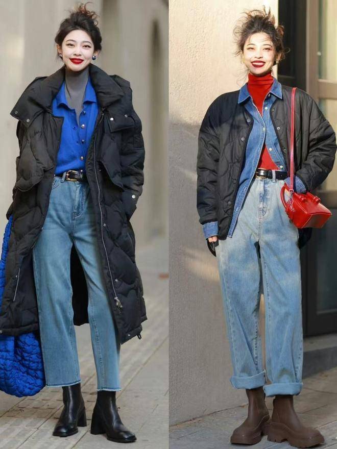 牛仔裤神气齐不同,搭配也有一定的别离,比如说当你用蓝色的经典色调牛仔裤来搭配玄色的羽绒服,为了能增多造型的精细感和仙女感。