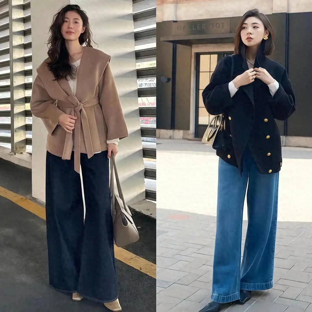 ②:西装直筒裤VS牛仔直筒裤