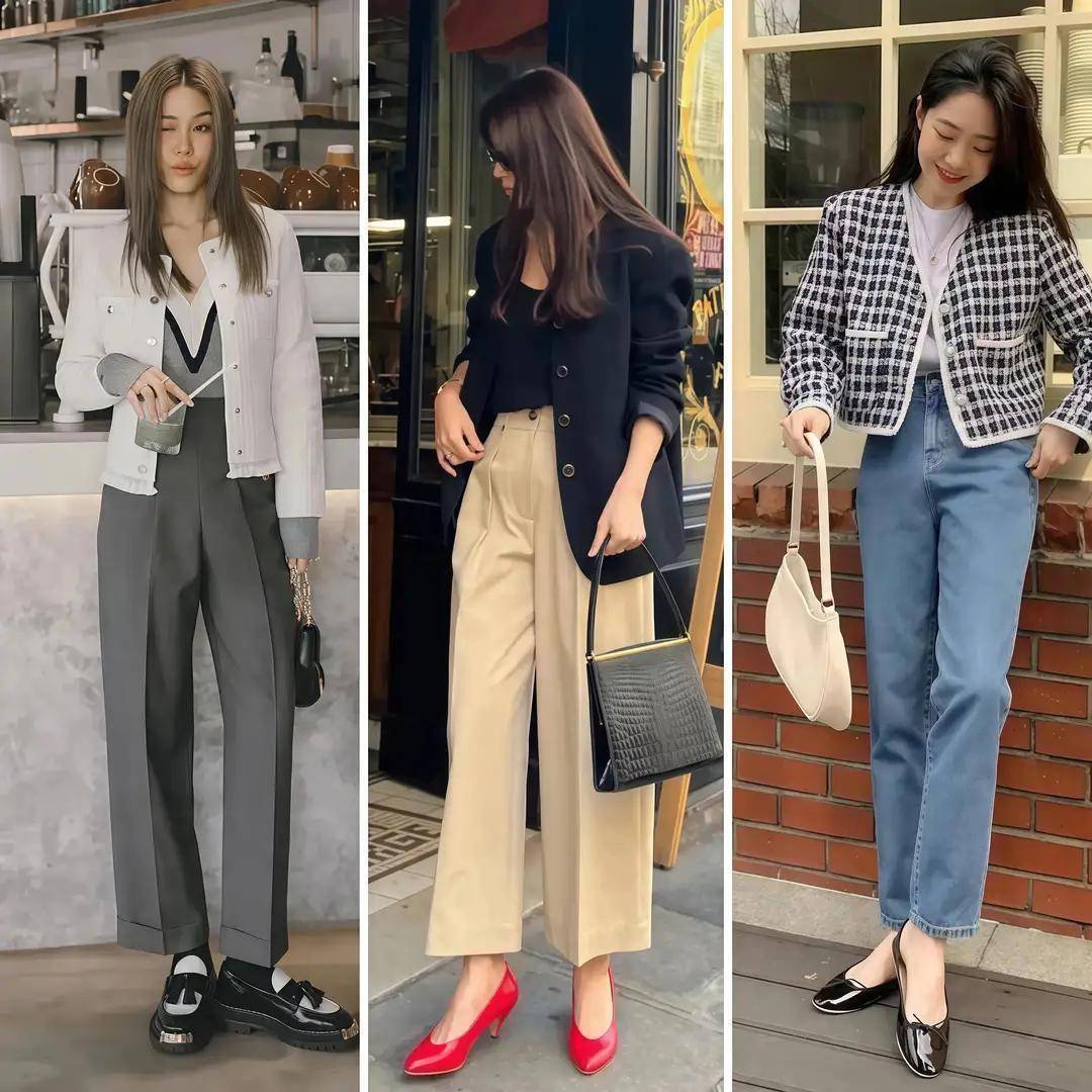 西装面料的裤子穿在身上挺阔有型,举例上头用一件小香风外衣或者是西服外衣来搭配上西装面料的直筒裤,脚穿一对浅口高跟单鞋,或者是乐福鞋,就能让你止境分解干练。