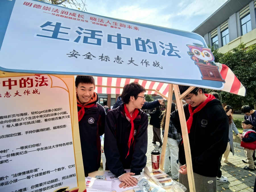 日前,华东政法大学附庸松江推行学校第六届晓法文化节“法治纵横”嘉年华启幕。不同于述而不作的普法课堂,在这所政法类大学附庸学校里,法治动作好玩得令东谈主“骑虎难下”。