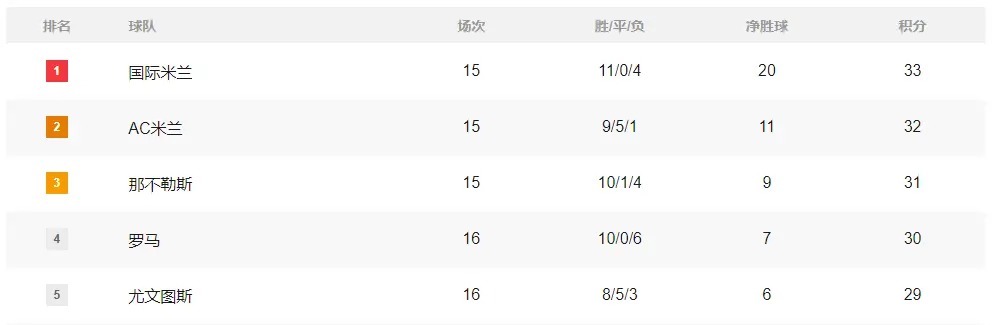 北京时辰12月22日,五大联赛再战一轮,积分榜情况如下: