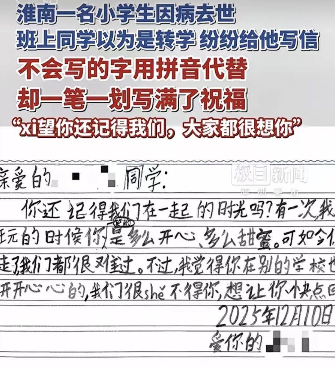 小学生病逝,同学们在拼音和错别字里写满了爱 | 新京报快评