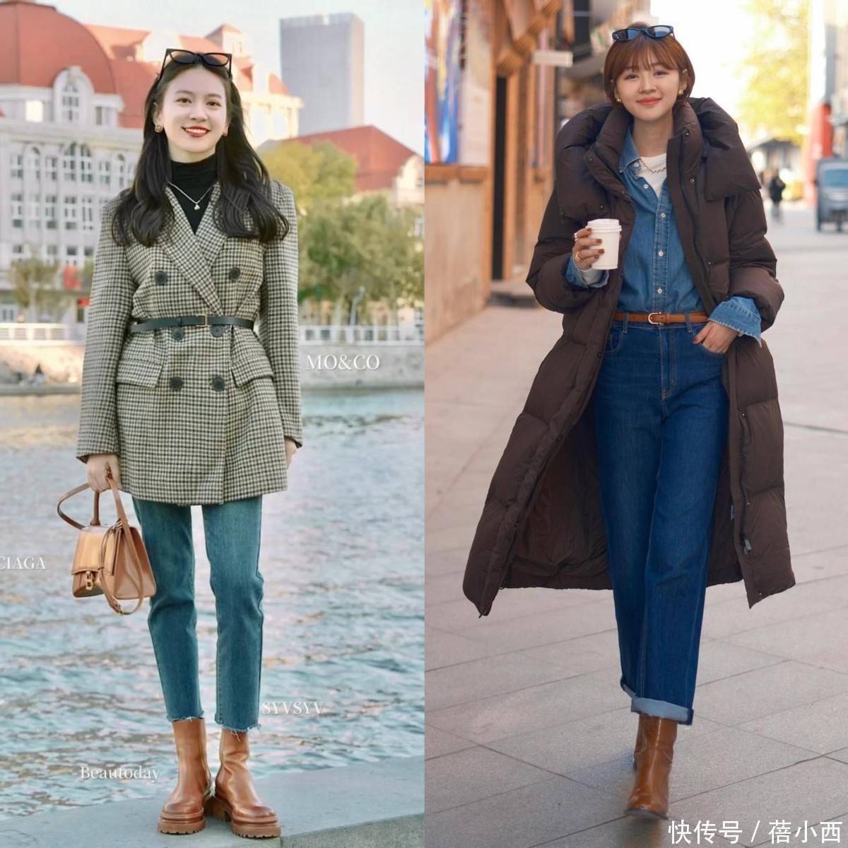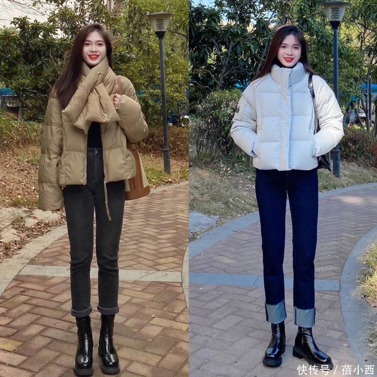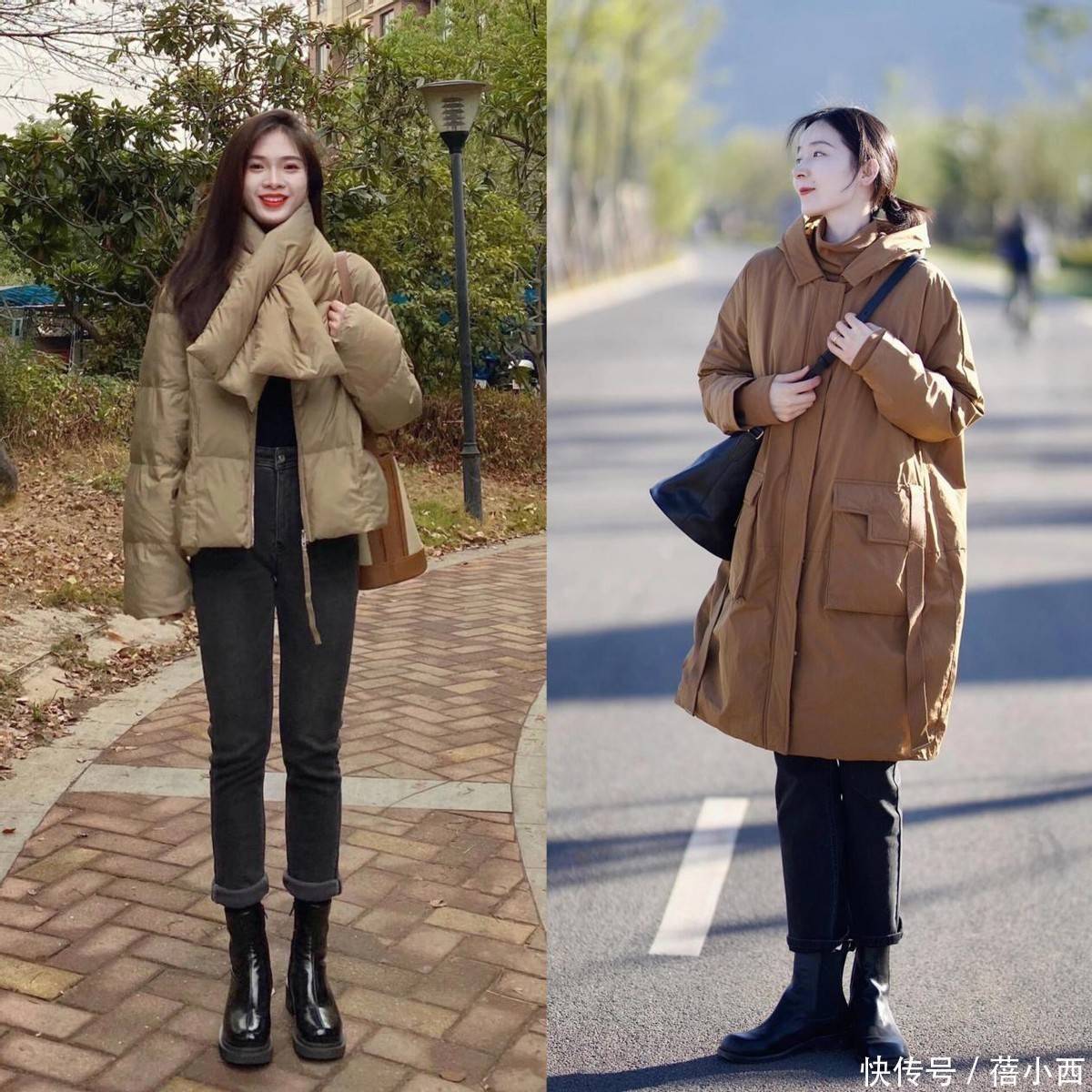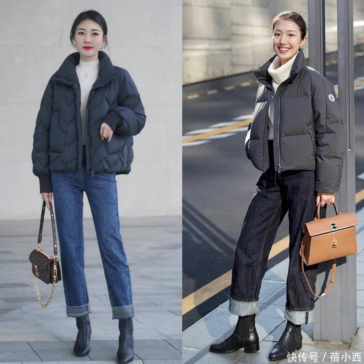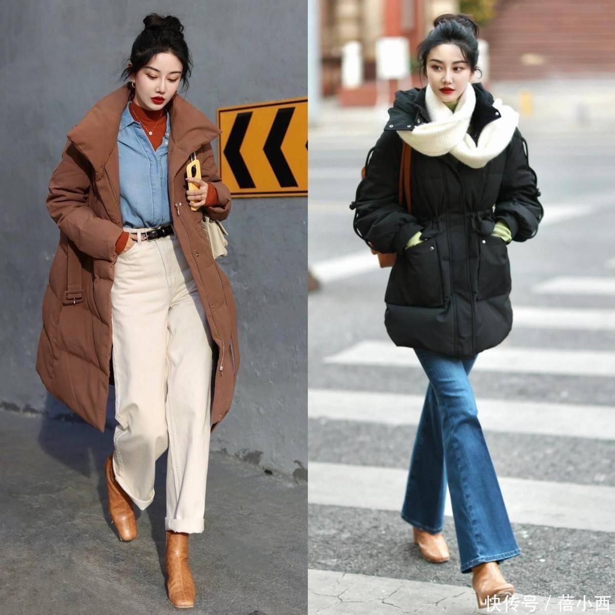 平时外出的时分,咱们不错在上半身穿一件宽松的羽绒服,下半身搭配直筒九分裤和都踝靴,利落有型,御寒和显瘦增高都能兼顾。