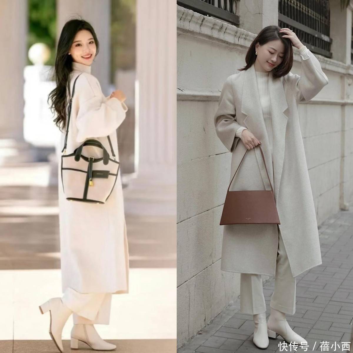 全身同色系的搭配最阻拦易出错了,若是你莫得搭配想路,不错尝试这种白色大衣和白色阔腿裤的搭配有策画,踩着小白靴邻接,从新到脚都是同色系,看起来颠倒配合,还不错打造出关爱的氛围感。