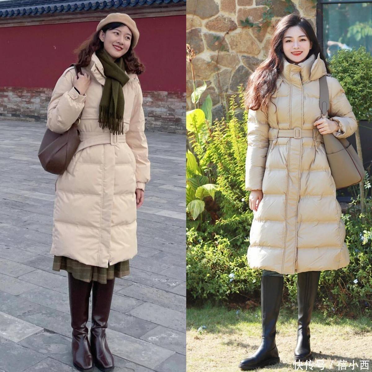 若是在阴寒的室外想要把御寒责任作念到极致,一定要来尝试一下这种长款羽绒服和紧身裤以及长筒靴的搭配组合。