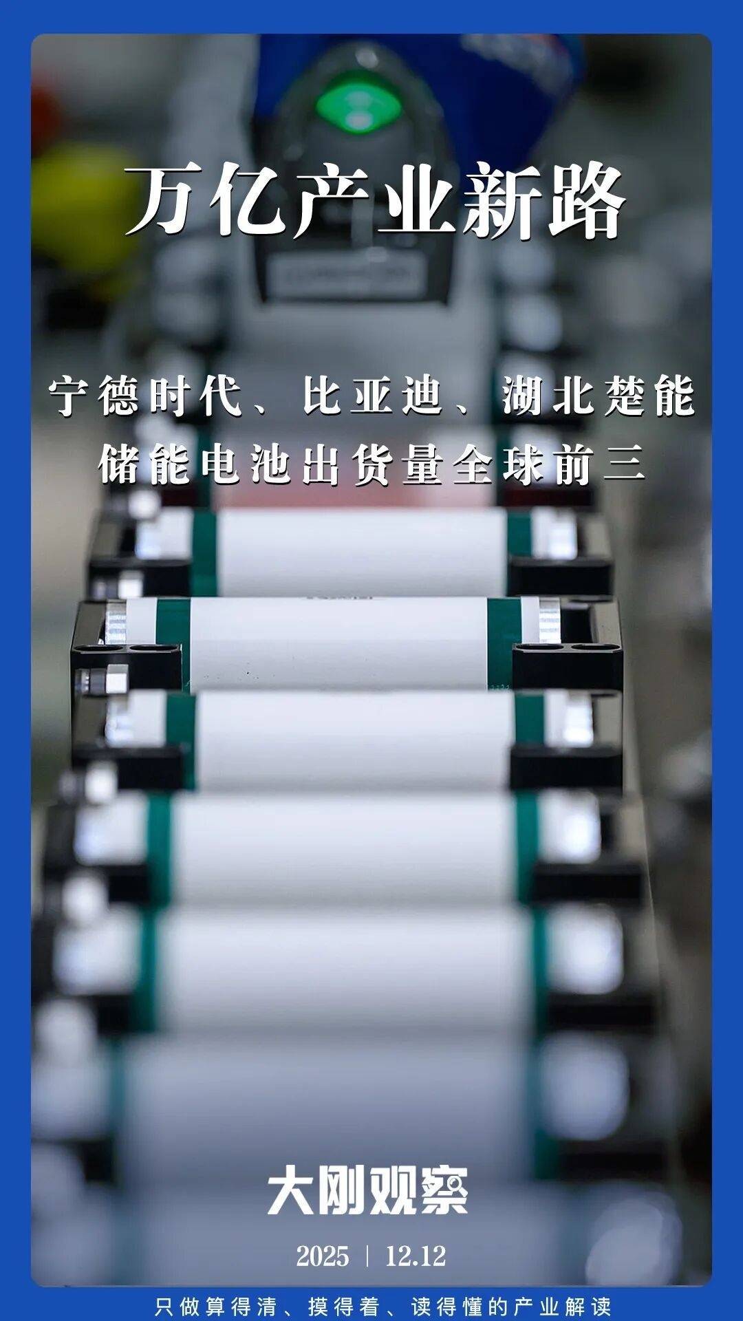 Lithink亚太锂电产业发布的2025年第三季度全球储能出货名次高傲,楚能与宁德时期、比亚迪一说念杀入全球储能电板出货量前三位。