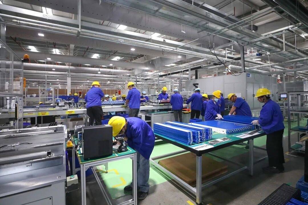 ▼比亚迪襄阳产业园汽车能源电板坐褥车间,责任主说念主员正在进行配件拼装。图/视觉中国